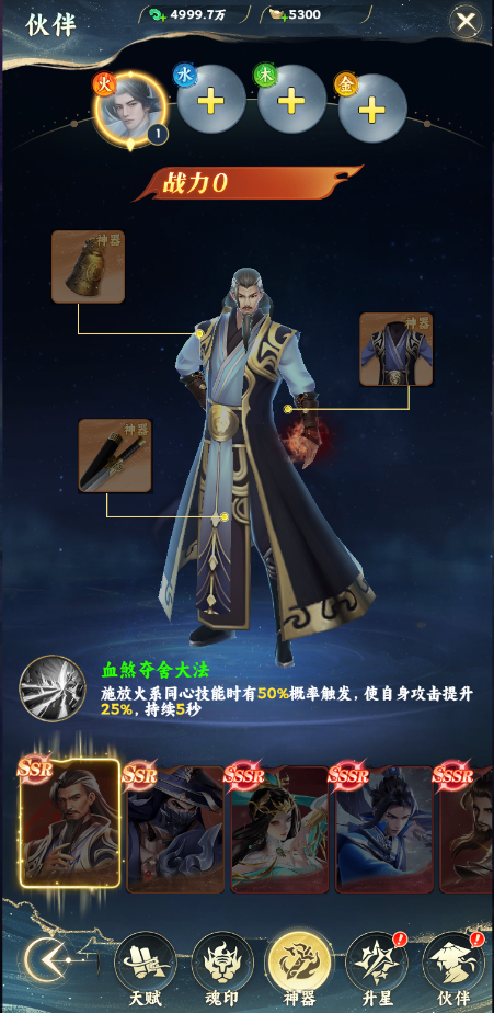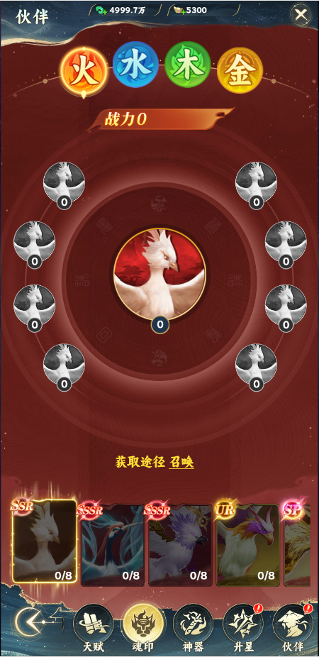玩家獲得某一屬性的伙伴后就可以激活某一屬性的魂印,激活魂印會(huì)提升玩家戰(zhàn)力,魂印集齊一套后還會(huì)獲得套裝效果進(jìn)一步的提升屬性。
