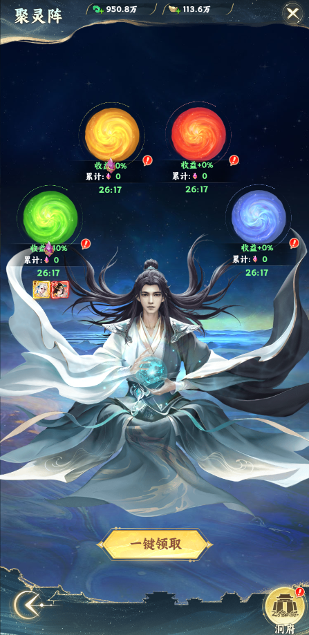 修仙3轉(zhuǎn)開啟。聚靈陣會隨著時間產(chǎn)出神將升級材料,可以通過進(jìn)駐伙伴提升聚靈陣產(chǎn)出效率,有幾率產(chǎn)出特殊道具。聚靈陣可以消耗材料進(jìn)行升級,升級后會提升產(chǎn)出效率。