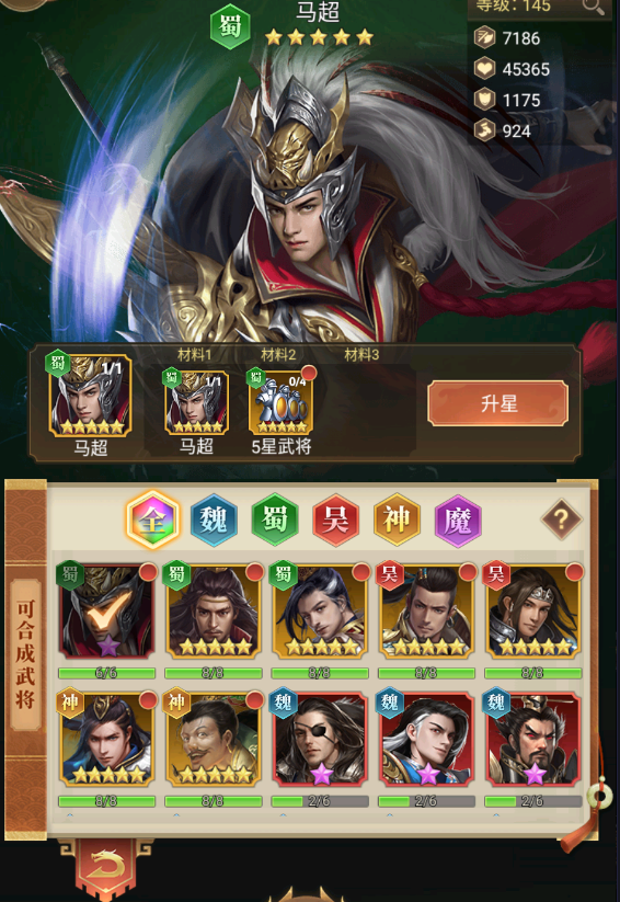 1.武將升星大廳可以將低星武將升星為同名高星武將,4星可以升為5星,5星可以升為6星。