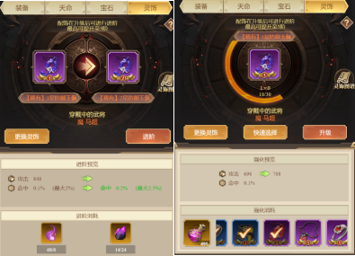 3.?靈飾可通過消耗強(qiáng)化材料或是其他靈飾進(jìn)行強(qiáng)化,強(qiáng)化滿后可進(jìn)行升星。
