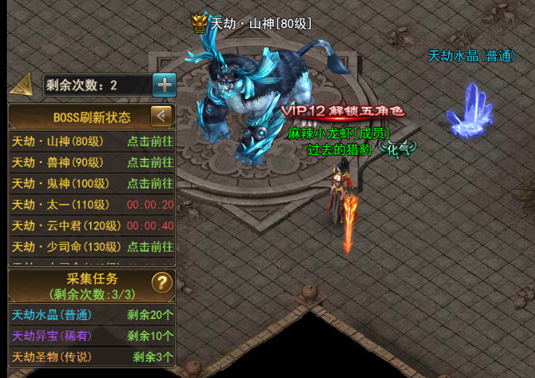 每個(gè)VIP BOSS每日只能挑戰(zhàn)一次,每日5點(diǎn)將重置可挑戰(zhàn)的最高等級(jí)的兩個(gè)VIPBOSS挑戰(zhàn)次數(shù)。