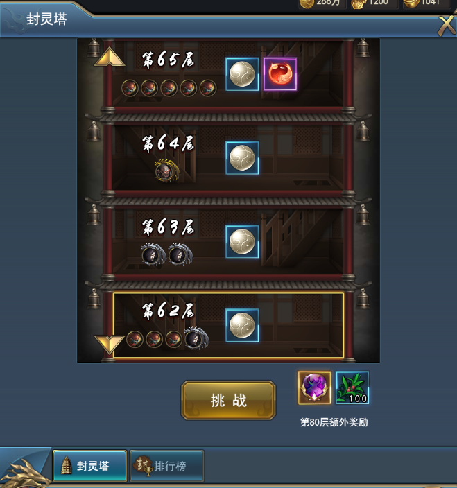 封靈塔從主城進(jìn)入,爬塔式玩法,從第一層開(kāi)始向后挑戰(zhàn),只要通關(guān)成功就可以繼續(xù)挑戰(zhàn)下一關(guān)。通關(guān)獎(jiǎng)勵(lì)可以提升角色屬性的屬性丹,以及提升“境界系統(tǒng)”的必備材料“封靈丹”。