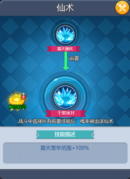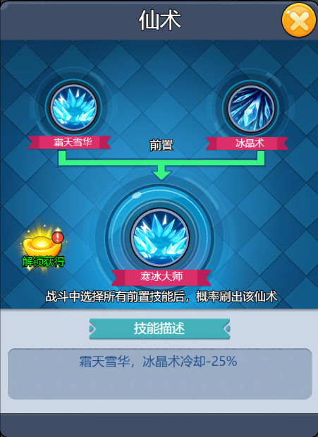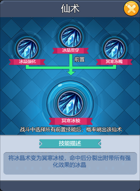 技能介紹很簡(jiǎn)單理解,命中怪物就可以凍結(jié),且合成路徑也比較簡(jiǎn)單,只要解鎖冰晶術(shù)就有概率刷到。? ??
