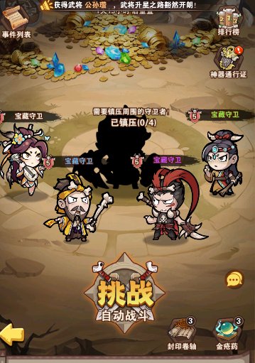 2,尋龍?zhí)綄?,探寶可獲取神器碎片和神器鍛造石還有天宮石,該模式建議上陣比較強(qiáng)力的角色去闖關(guān),闖關(guān)越多獲取的材料越多,(有能力的可以把神器通行證購買)卡關(guān)的時候可以使用封印卷軸闖到下一關(guān)