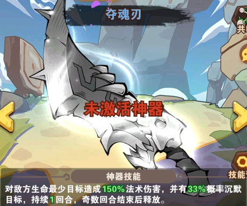 奪魂刃:對敵方生命最少目標(biāo)造成150%法術(shù)傷害,并有33%概率沉默目標(biāo),持續(xù)1回合,奇數(shù)回合結(jié)束后釋放。