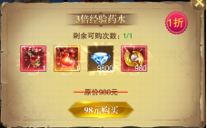 1、搶購(gòu)贈(zèng)送的雙倍藥水可以選擇在闖關(guān)過(guò)程中使用,這個(gè)藥水會(huì)對(duì)怪物的經(jīng)驗(yàn)有加成