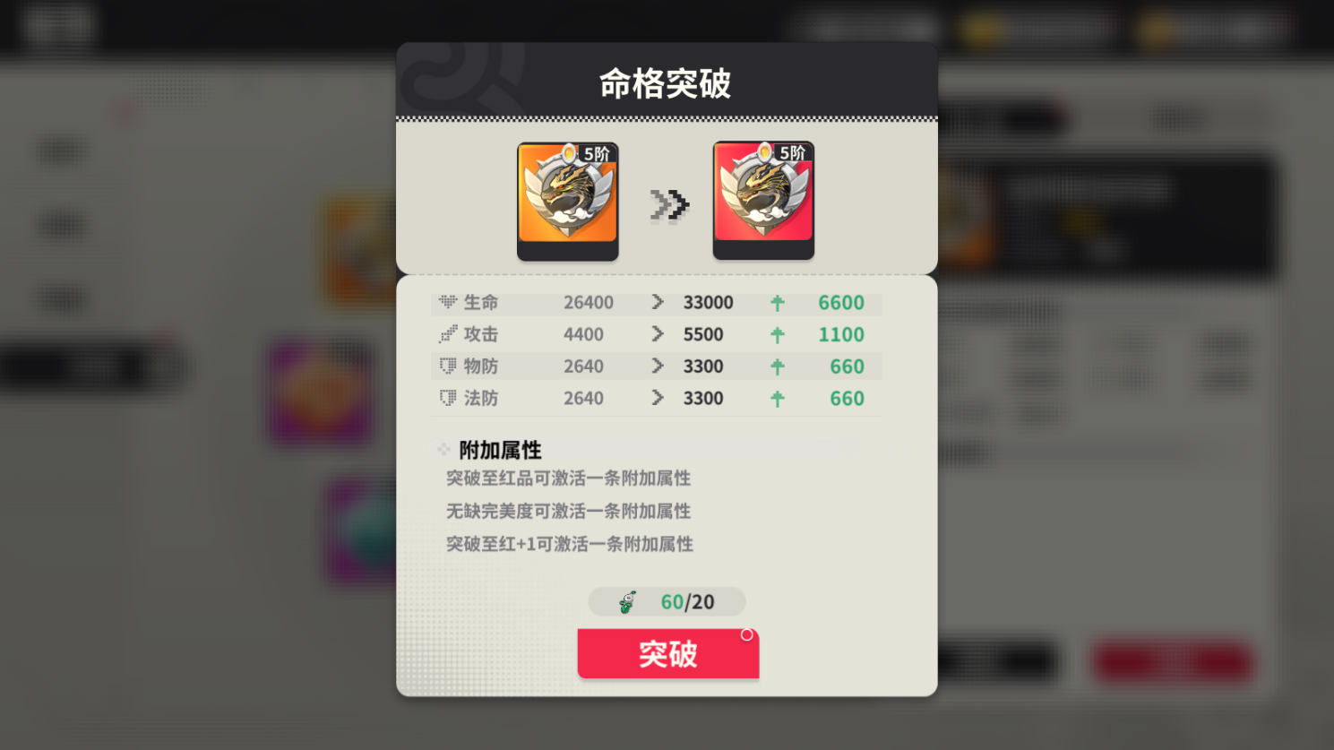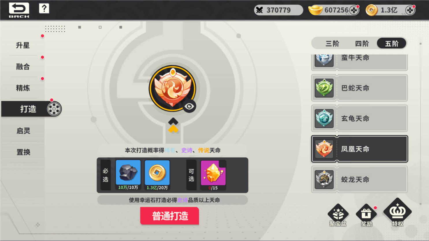 打造獲得的天命包含不同品質(zhì)和完美度,只有橙品的天命可以突破
