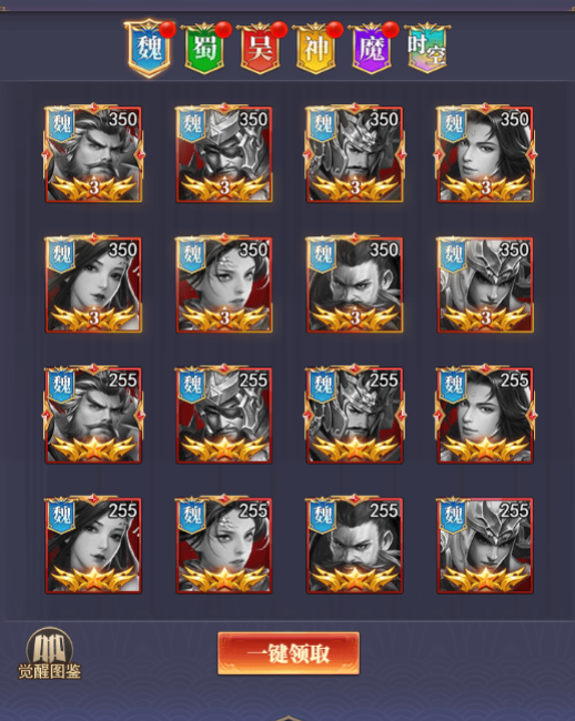 2、武將品質(zhì)從高到低:時空武將-神魔武將-三國武將