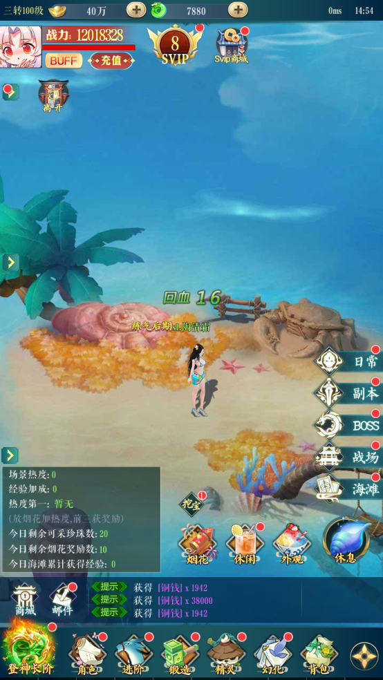 5.海灘活動(dòng):參與海灘活動(dòng)也能獲得大量經(jīng)驗(yàn)哦,但有時(shí)間限制,每天12:00-12:30開(kāi)啟一次,每天18:00-18:30開(kāi)啟一次,每天可參與兩次,小伙伴們別忘記哦~