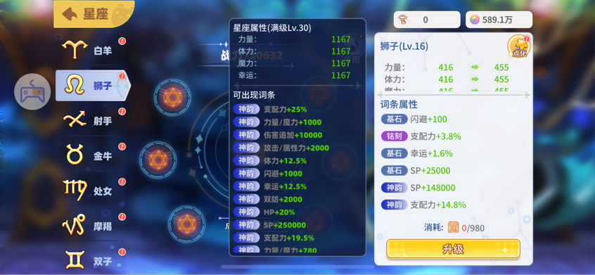 挑戰(zhàn)難度越高,獲得的星方和星象秘語也就越多,星方用來升級星座等級,星象秘語用來點化星座屬性。
