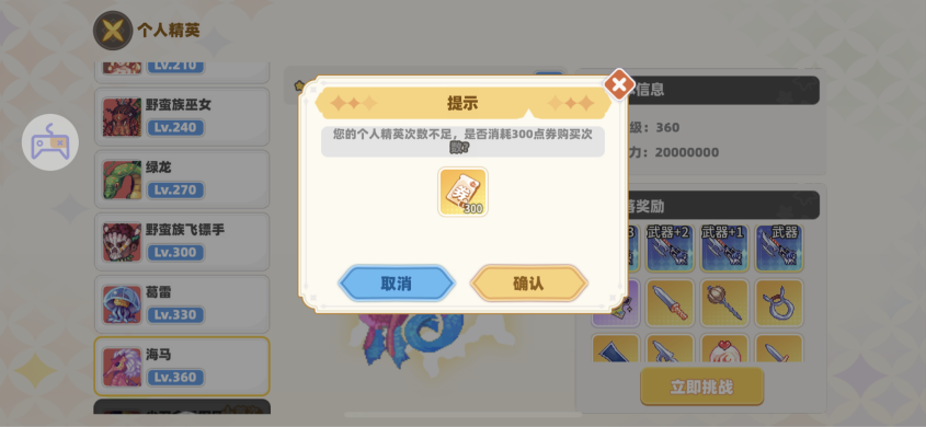 活躍度任務中,個人精英、野怪精英、怪物大廈,鑒石首領(lǐng)都可以花費300點券增加次數(shù),每天最多增加2次。