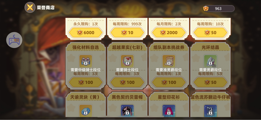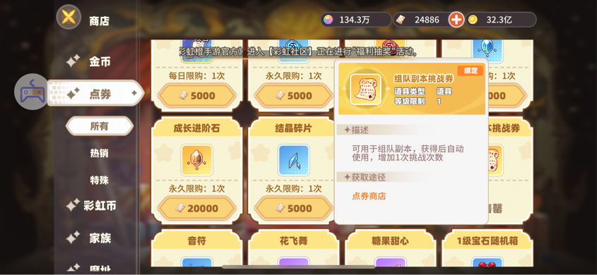 另外,每日禮包,周卡,跨服競技的榮譽商店里,以及不同時期的活動都可以買到組隊副本挑戰(zhàn)券,花費不等。