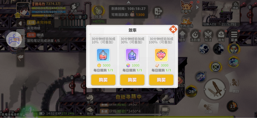 我們的每周禮包里面會有一瓶24小時的三倍經(jīng)驗藥水,我們不開戰(zhàn)令儲存活躍度的目的就是要讓這瓶24小時的三倍經(jīng)驗藥水利用最大化。 經(jīng)驗藥水的獲取途徑有每日禮包(6元檔,1瓶1小時的雙倍經(jīng)驗),每周禮包(30元檔,1瓶24小時的三倍經(jīng)驗),周末游玩(6元檔,1瓶12小時的三倍經(jīng)驗,周末兩天一共可以買2瓶),以及平時可能出現(xiàn)的各種活動(基本都是6元檔,1瓶1小時的三倍經(jīng)驗或五倍經(jīng)驗),還有每天經(jīng)驗地圖里的效率點開,有3種30分鐘的藥水,可以量力購買。